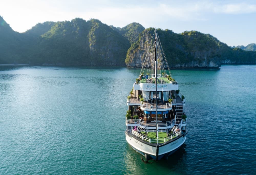 This vessel pulls anchor and sets sail from Ha Long for at least part of your stay.