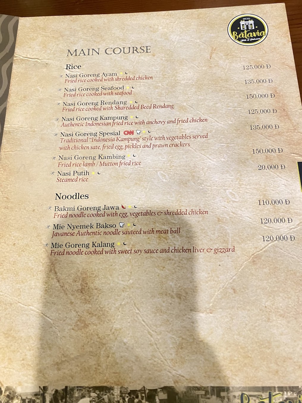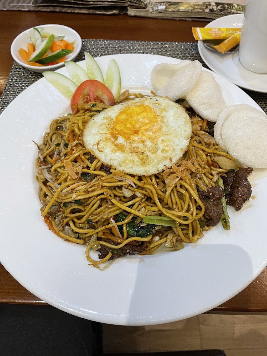 Thực khách có thể thưởng thức nhiều món ăn đặc trưng nổi tiếng của Indonesia như nasi goreng, rendang, satay, soto cùng nhiều món ăn vùng miền hấp dẫn khác. Mỗi món ăn đều đậm đà hương vị gia vị đặc trưng, phản ánh sự đa dạng và tinh tế của nền ẩm thực Indonesia. Không gian quán mang phong cách cà phê nhẹ nhàng, phù hợp cho bữa ăn gia đình, gặp gỡ bạn bè hoặc dùng bữa thư giãn.